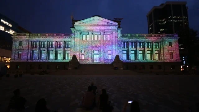 6K video and soundscape, projection mapped on the Vancouver Art Gallery. Vidéo couleur 6K et son, projetée sur la facade du Vancouver Art Gallery. 10:00 mins. 2017.